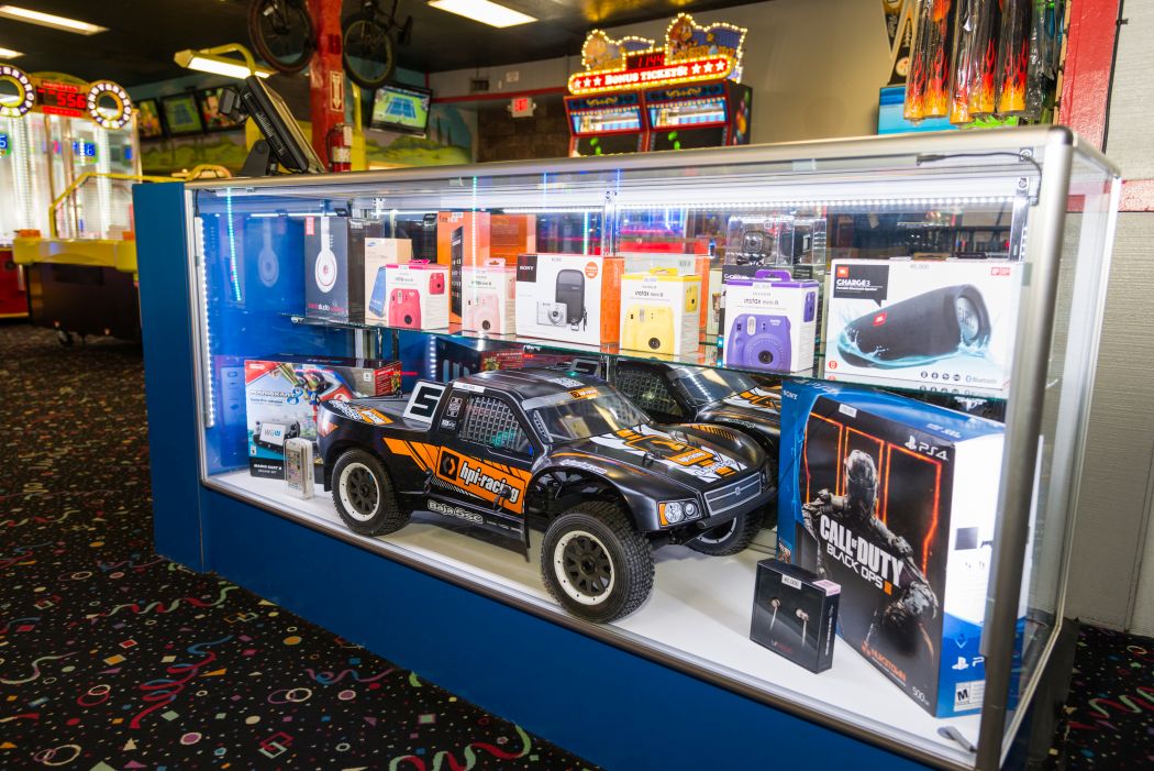 One round of golf, $20 game card, large slice of pizza, soft drink, 3,000 tickets toward arcade prize redemption for the birthday child