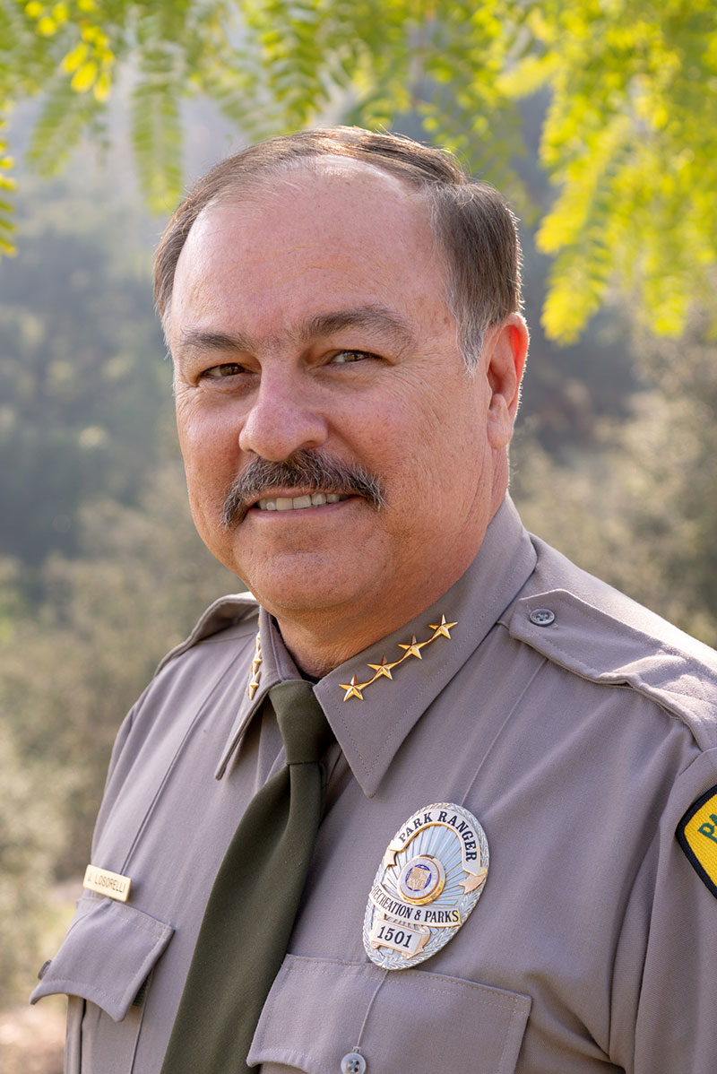 Chief Joe Losorelli is a 35-year veteran of the Los Angeles Police Department (LAPD). He retired from the LAPD in 2017 as the Commanding Officer of Rampart Detective Division. Chief Losorelli is married and has a son who is also an LAPD officer. In 2019, Chief Losorelli joined the team of Proud Park Ranger Division as Chief Park Ranger.